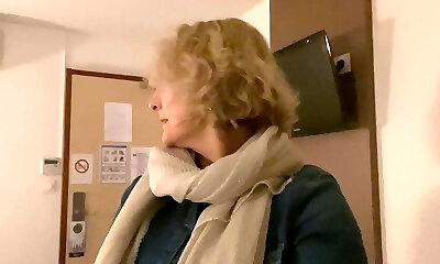 Sexy Busty Grandma Gives a Blowjob While Taking a Dump